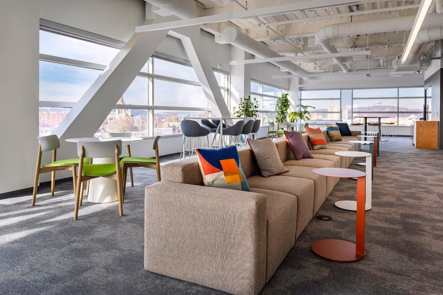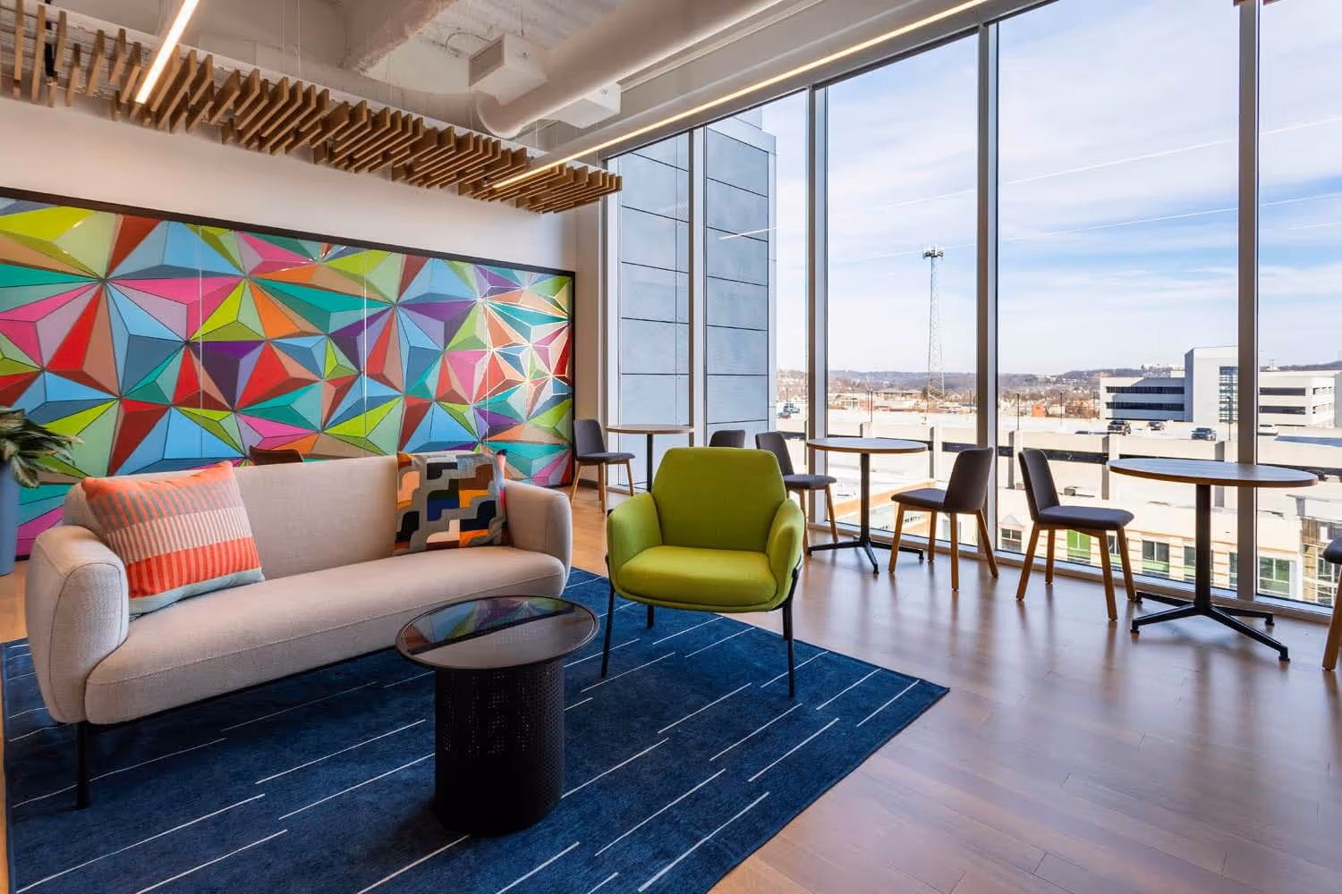 Management Science Associates, Inc. partnered with Wildman Chalmers Design for the relocation of their Pittsburgh office to a new 30,000 sf suite in Bakery Square. Focusing on the creation of a space that utilizes the latest in innovative work approaches, the existing office fit-out was modified to bring it in line with the company's vision. Taking lessons from the Pandemic and the Client's new hybrid work solution, the office was reconfigured to foster collaboration: new furniture was chosen for comfort and flexibility and a focus on “we” spaces instead of “me” spaces, allowing the employees to use their day in the office for teamwork and in-person meetings. Additionally, by incorporating the Client branding, WCD worked to integrate graphics & wayfinding through wallcovering and carpeting to create bright and inspiring spaces. With a wellness room, an open gathering area, and a spacious room for company events, their new corporate office has become a central hub for employees.