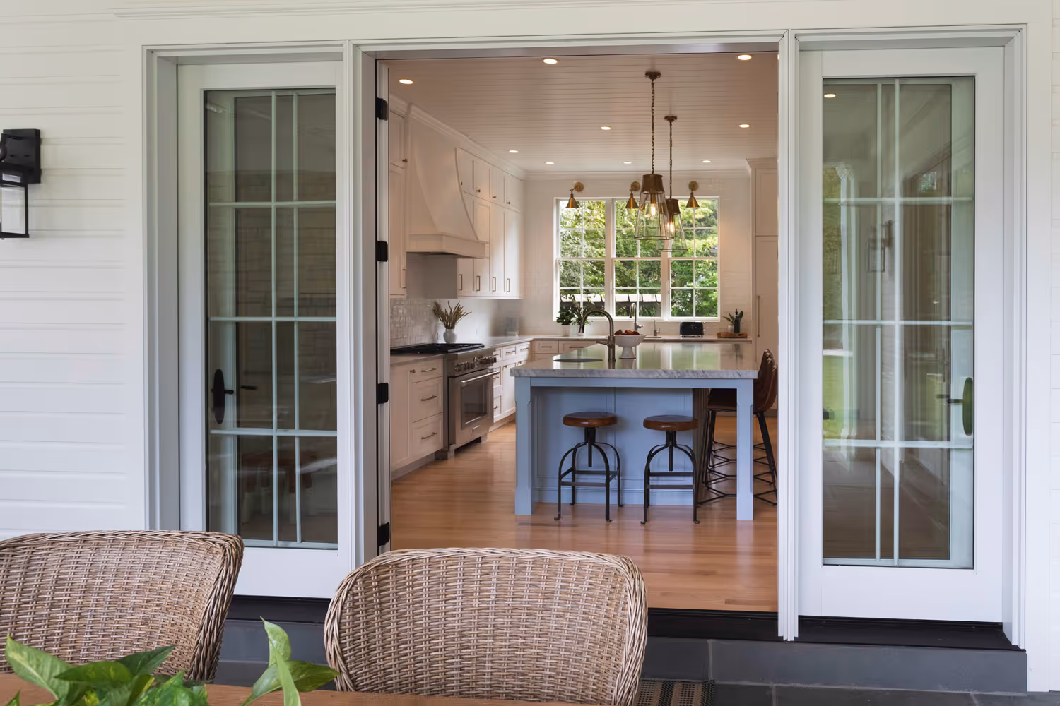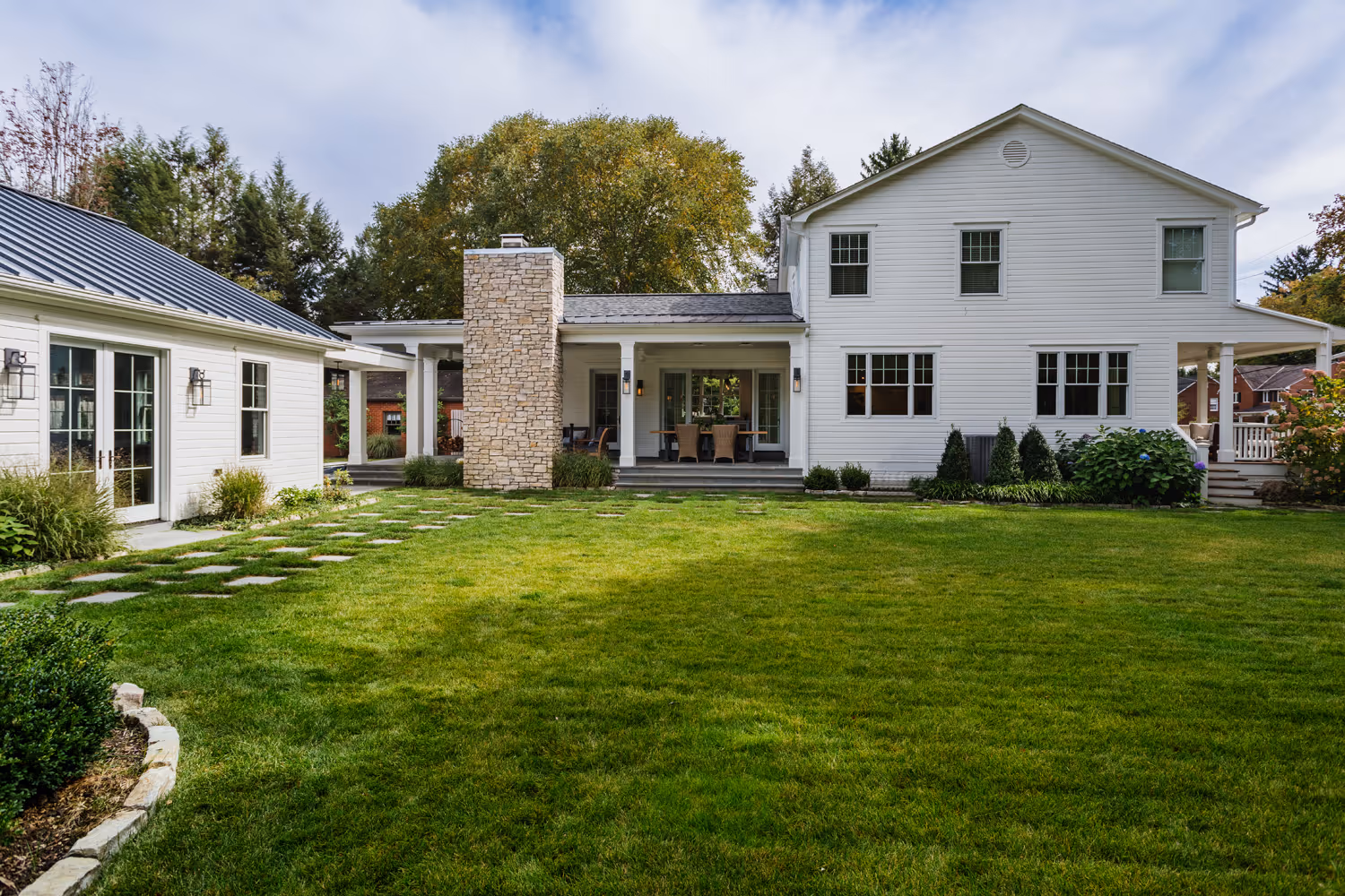 Wildman Chalmers Design was asked by the owners of this historic single-family home in Sewickley to develop designs for a renovation and a new addition to the main house. The owners wanted an outdoor living space with an inground pool, covered private porch with a fireplace, and a pool house with a 2-car garage. The project scope included architecture and interior design. The renovation and addition include a new large open kitchen, mudroom, laundry room, full bath on the first floor, and finished basement. The owners discussed with the architecture and interior design team their desire for the project’s aesthetic to capture the lifestyle and flavor of the beach where the family spends their summer vacation.
