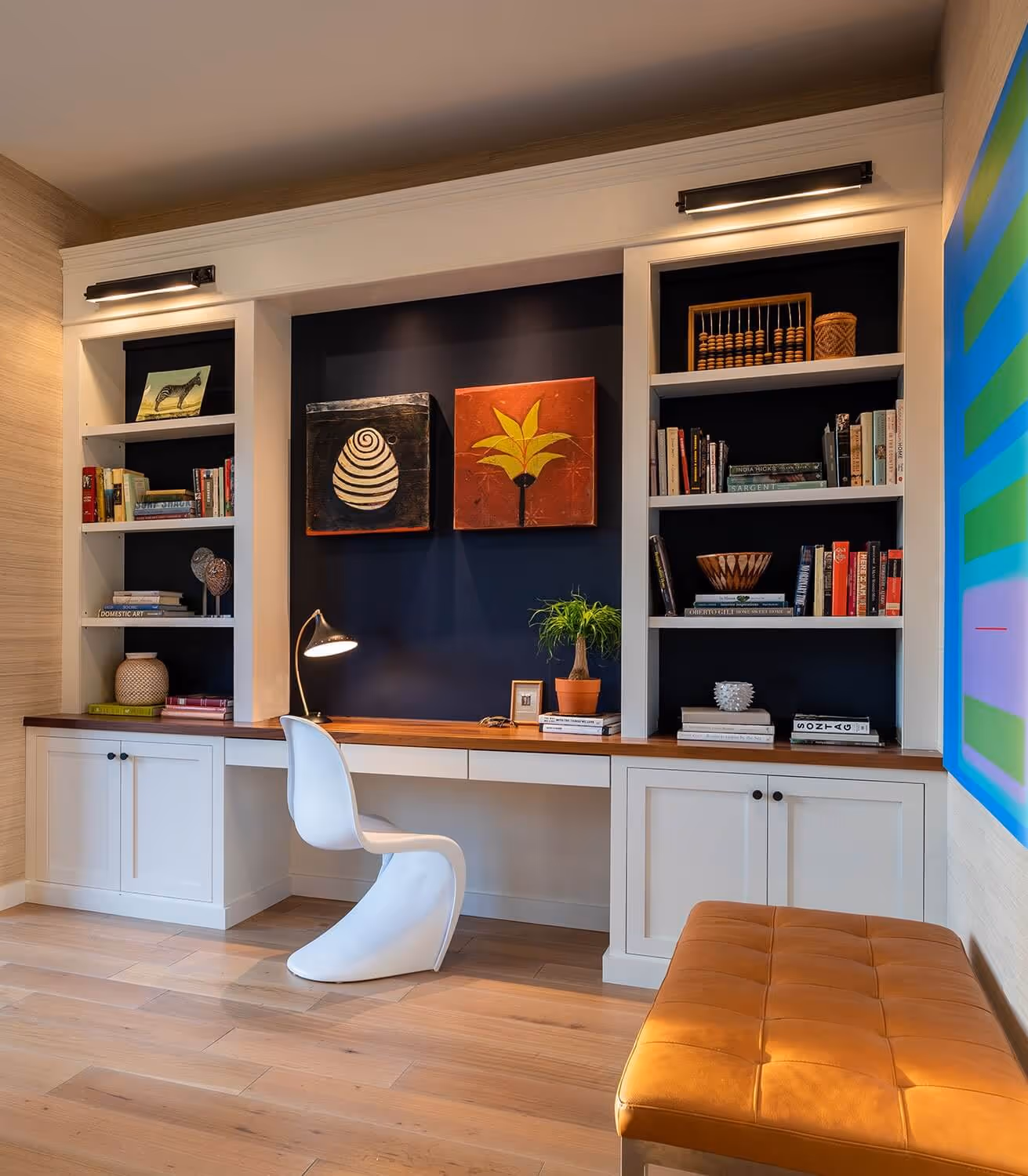 The new building offered 1,700 square feet of interior space as well as a spectacular 590-square-foot terrace from where they could enjoy the city skyline. They hired Wildman Chalmers Design, LLC to help them incorporate their custom furniture into the luxury two bedroom, 2½- bathroom unit.
